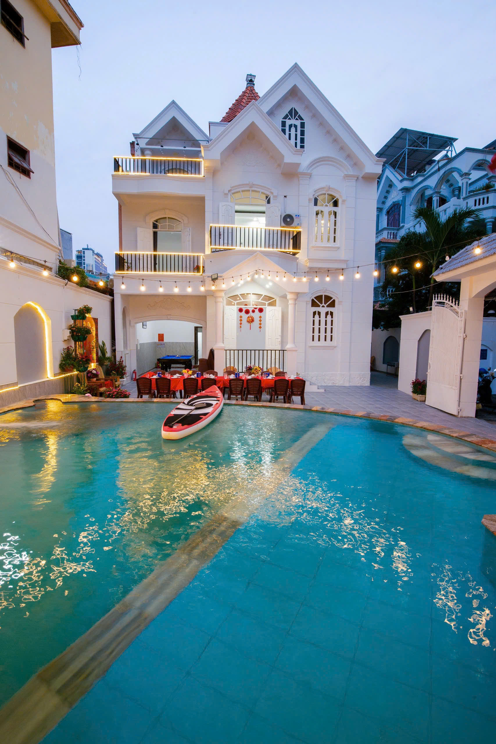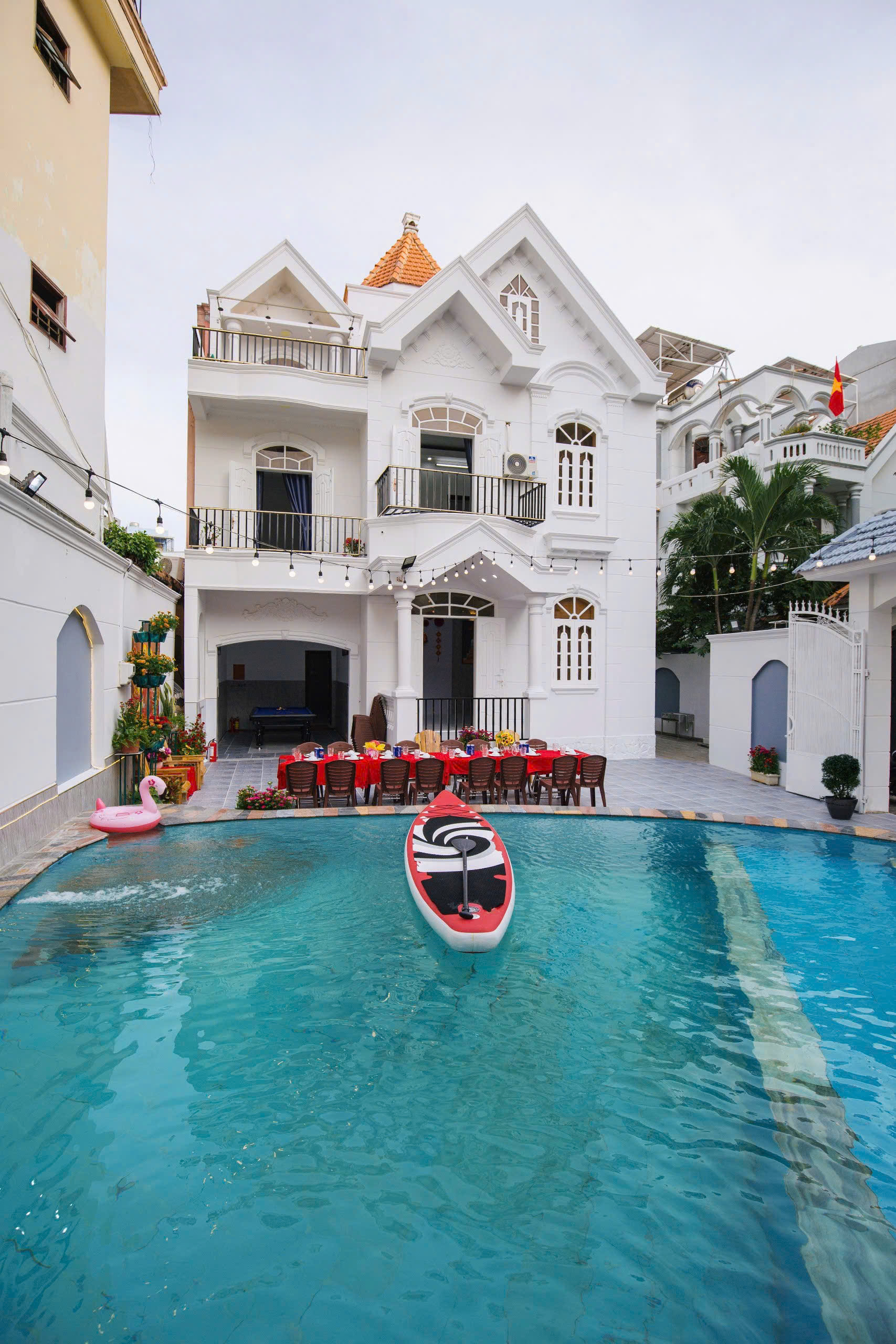 • Cấu trúc: 🌊Villa với thiết kế 1 trệt 2 lầu, hồ bơi trái tim